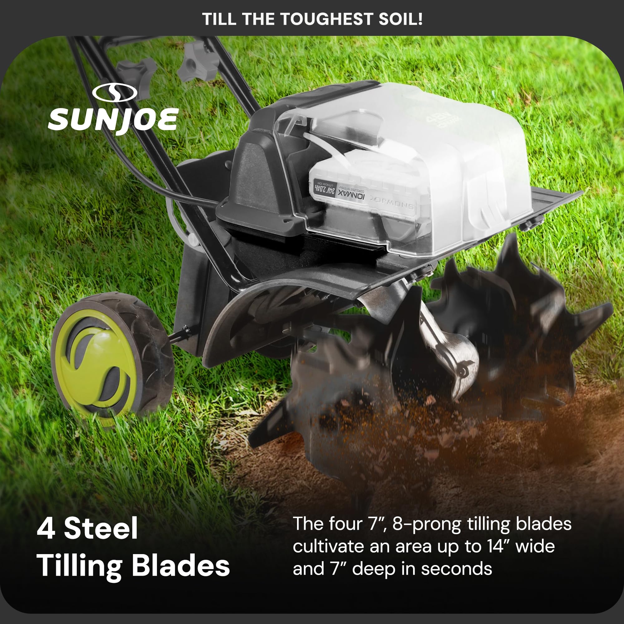 Sun Joe 24V Cordless Garden Tiller Cultivator Kit with Battery and Charger for Weeding, Soil Aeration and Prepping Plant Beds, Black, 24V-X2-TLR14