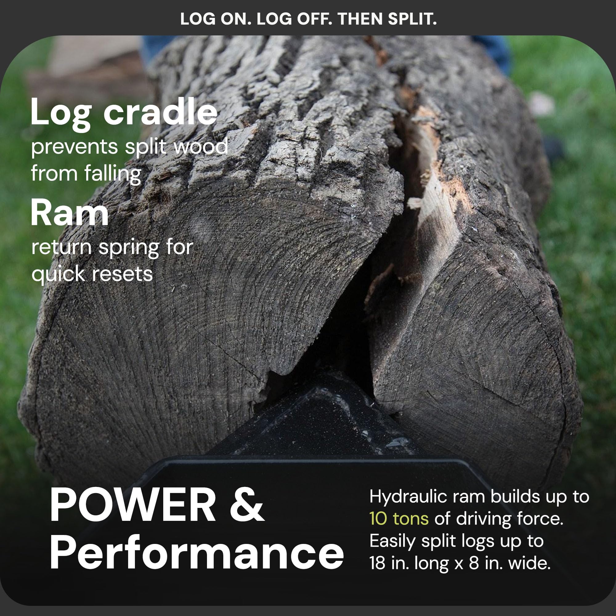 - Powerful Log Splitter: Log splitting machine splits firewood up to 18 inches long and 8 inches wide with 10-ton hydraulic driving force for tough timber tasks